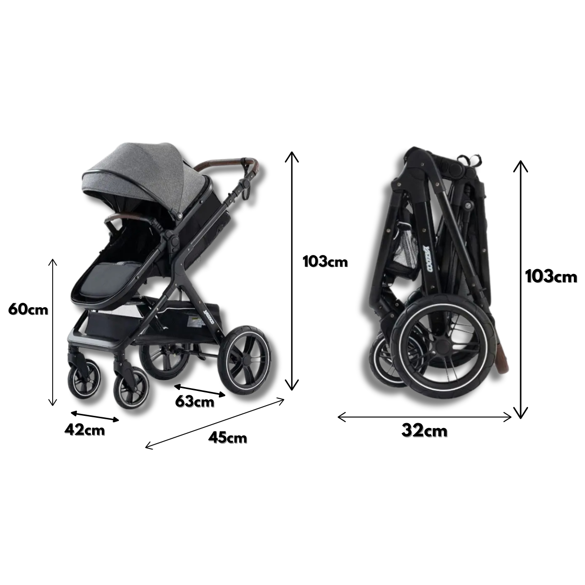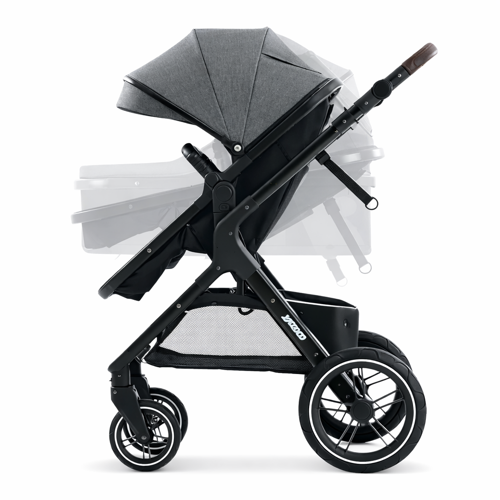 Det är en anpassningsbar barnvagn som växer med barnet. Sätet är justerbart, vilket ger komfort och säkerhet i varje fas av barnets tillväxt.