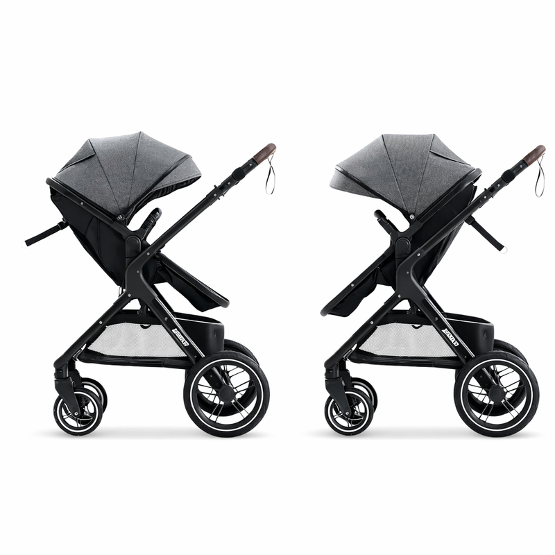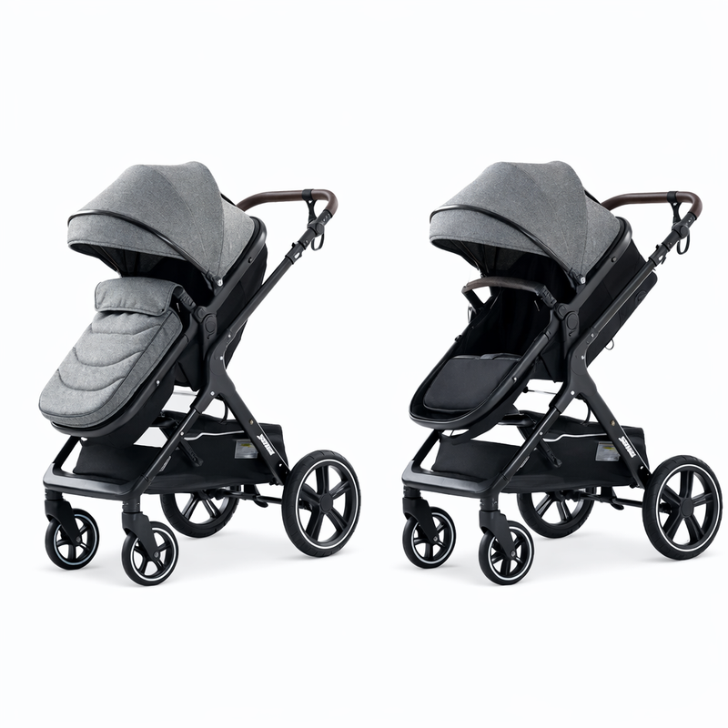 Barnvagnen möjliggör tvåvägsinställning av sitsen – ditt barn kan titta mot dig för en känsla av trygghet eller i färdriktningen för att utforska omgivningen.