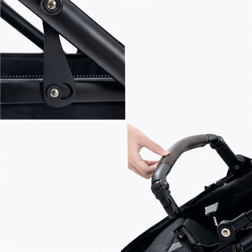 Det justerbara handtaget möjliggör enkel höjdjustering, vilket ger en bekväm körning för både längre och kortare föräldrar.