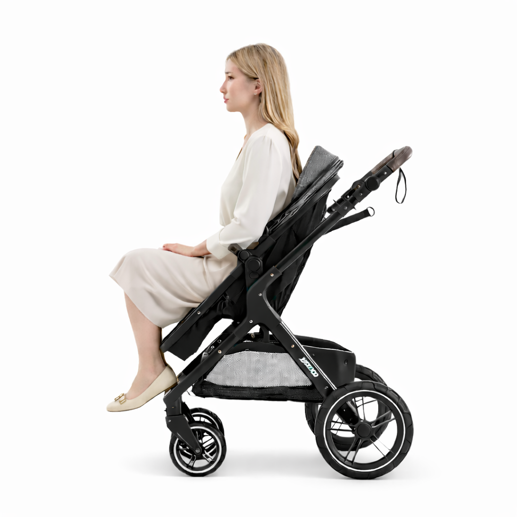 Barnvagnen möjliggör justering av säteslutningen från upprätt sittande till helt liggande position, vilket säkerställer optimal komfort för din lilla.