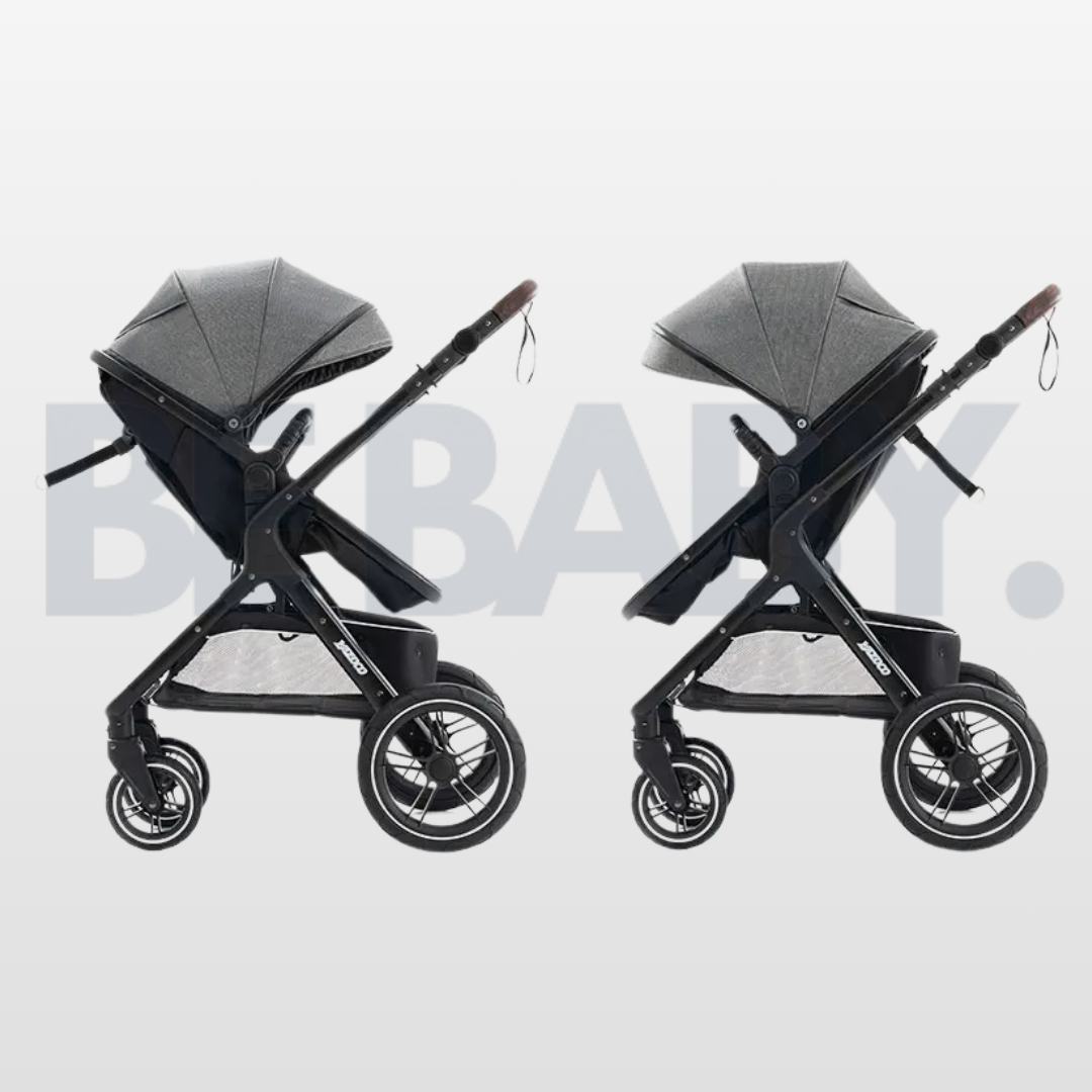 Izstopa zaradi svoje vsestranskosti in cene - združuje koŔaro, voziček in avtosedež v enem elegantnem dizajnu. Ponuja tudi vrhunsko udobje, stil in varnost.