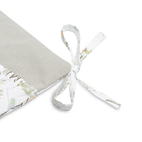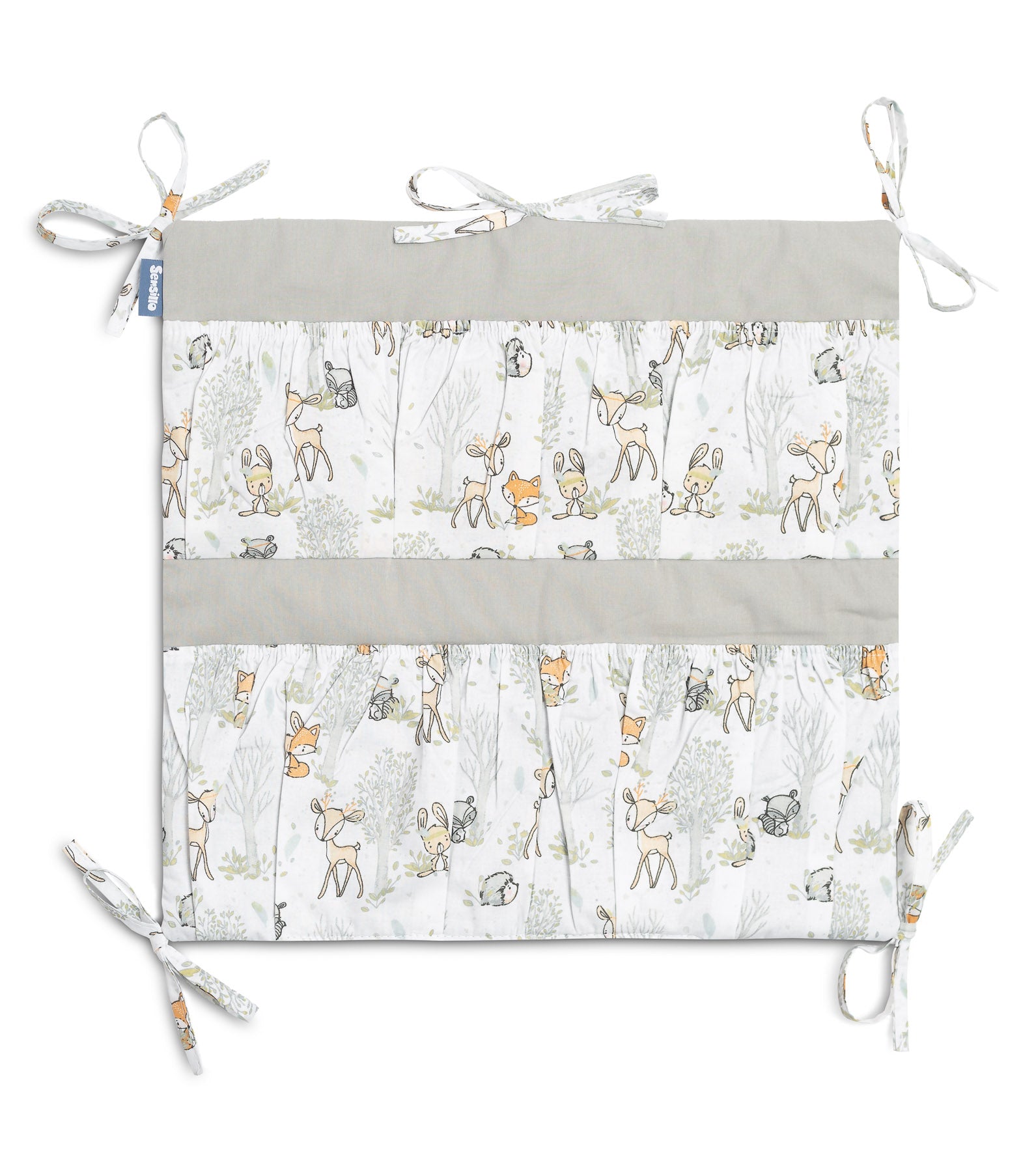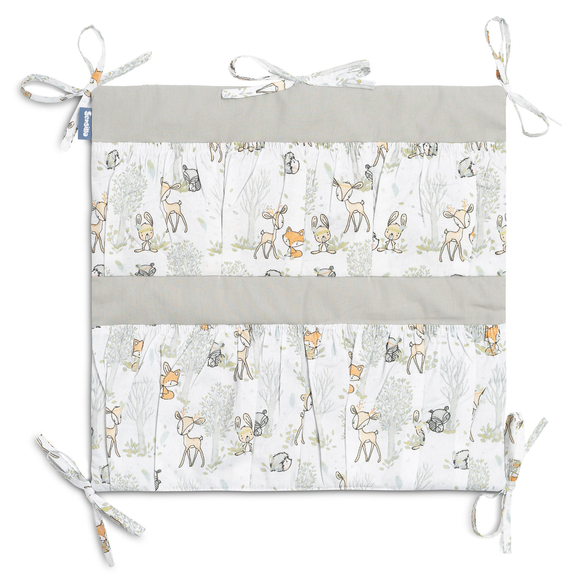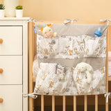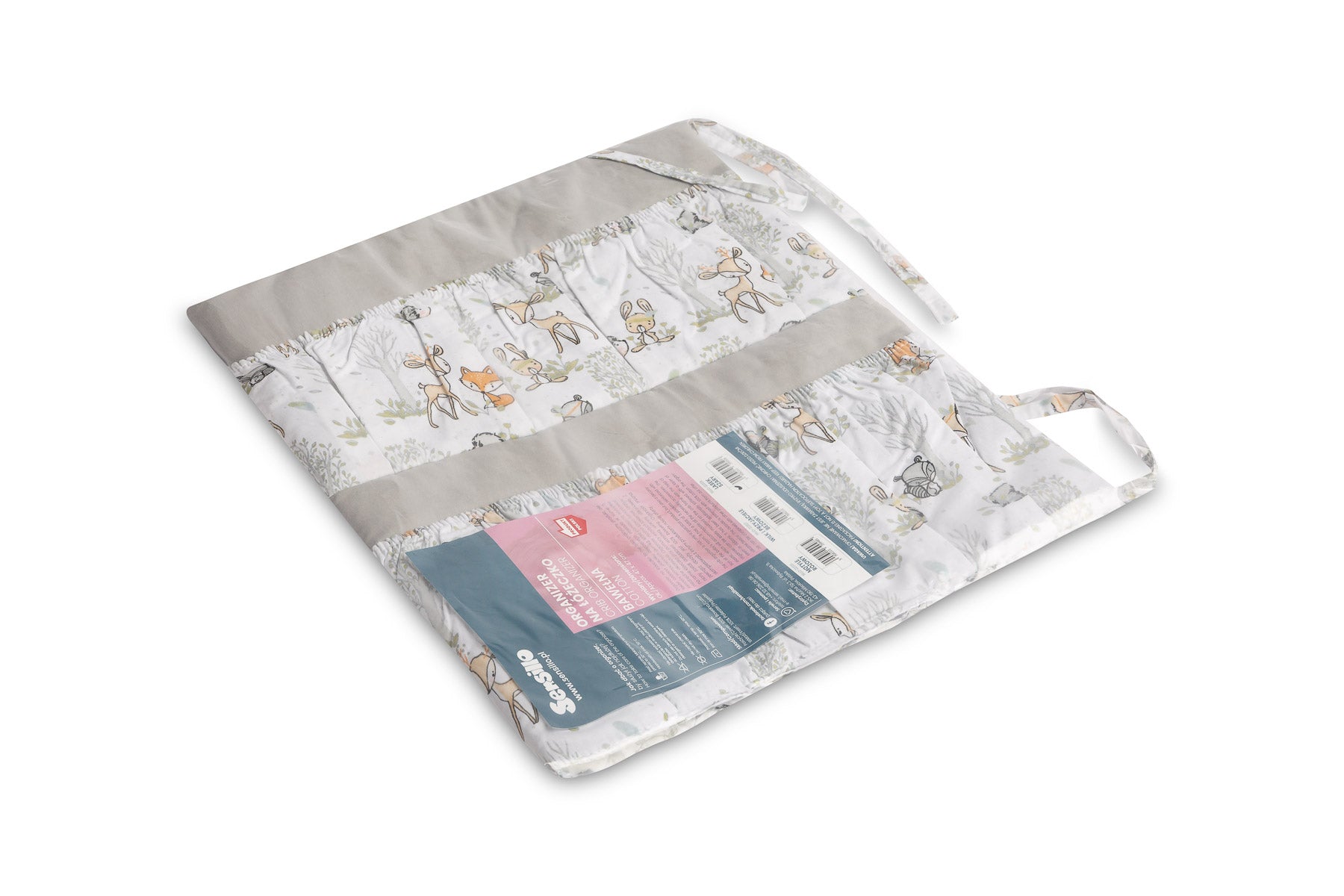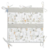 Organizator za posteljico ni le praktičen izdelek, ampak tudi okras dojenčkove sobe. Ima skupaj 5 žepov, ojačanih z elastiko, ki bodo sprejeli vse potrebne dodatke. Organizator se lahko enostavno namesti na okvir posteljice s pomočjo všitih trakov. Dodatno je ojačan s plastjo silikonskega flisa. Zunanjost je obrobljena s 100 % bombažem. Organizator se lahko kombinira z drugimi izdelki iz naše ponudbe.